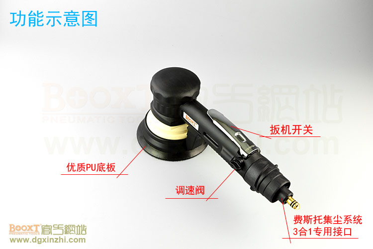 • 產(chǎn)品參數(shù): 底盤尺寸:5寸(125mm);轉(zhuǎn)速:10000rpm;偏擺:5mm;重量:1.2kg;使用氣壓:0.65Mpa;推薦內(nèi)徑8mm氣管;耗氣量:0.53立方米/分鐘;機(jī)器使用時多加氣動油保養(yǎng);需搭配集塵桶或中央集塵設(shè)備使用