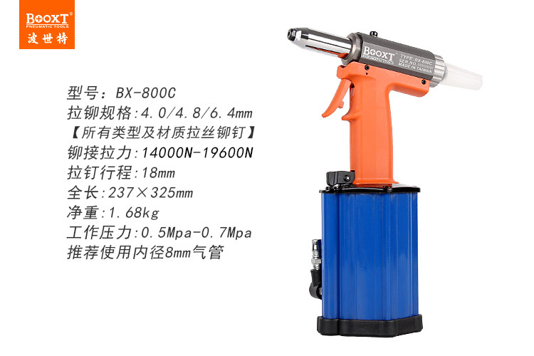 東莞市強(qiáng)勁五金工具有限公司提供臺(tái)灣BOOXT波世特品牌氣動(dòng)工具,氣動(dòng)拉釘槍BX-800C廠家直銷,首件享特價(jià)。咨詢熱線:4008301980