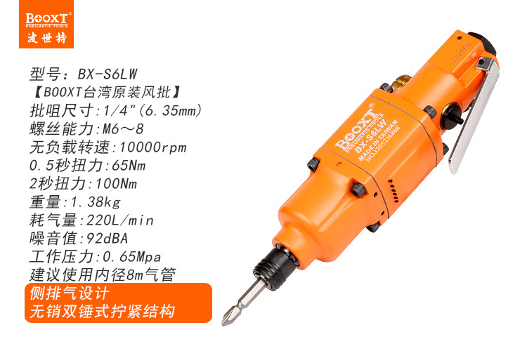 東莞市強(qiáng)勁五金工具有限公司提供臺(tái)灣BOOXT波世特品牌氣動(dòng)工具,氣動(dòng)螺絲刀BX-S6LW廠(chǎng)家直銷(xiāo),首件享特價(jià)。咨詢(xún)熱線(xiàn):4008301980