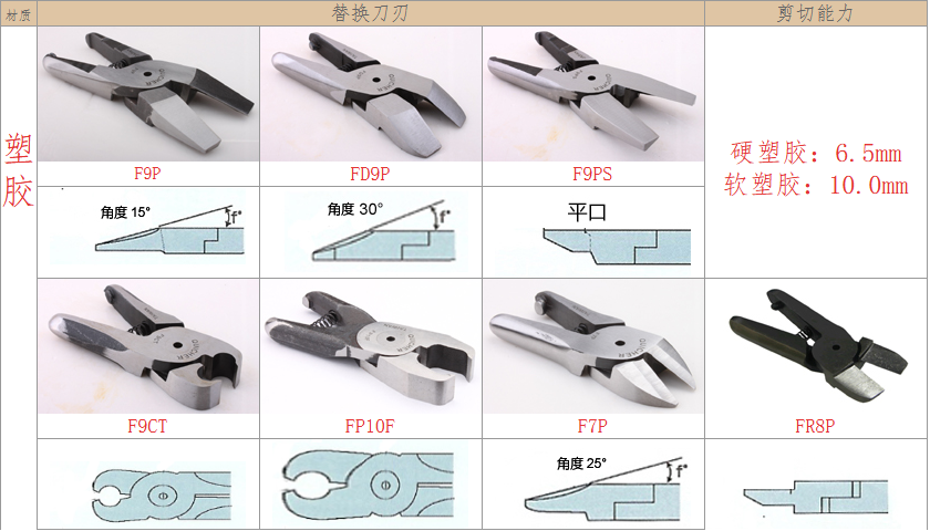 2.注意材質(zhì):材質(zhì)對(duì)選配刀刃非常重要,例如客戶要剪的銅鐵、材質(zhì)有鍍鈦、鍍烙、塑料材質(zhì)、加纖維超過(guò)20% 時(shí),一般刀刃不是剪不斷,就是使用壽命大大減少,塑料還容易在剪斷過(guò)程中碎裂。在這情形S刀刃應(yīng)選擇Z刀,塑料則建議使用電熱剪。