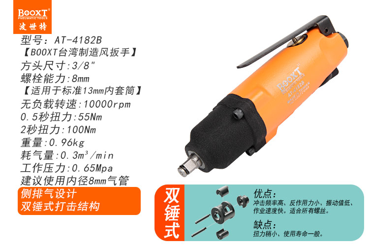 東莞市強(qiáng)勁五金工具有限公司提供臺灣BOOXT波世特品牌氣動工具,直柄迷你氣動扳手AT-4182B廠家直銷,首件享特價。咨詢熱線:4008301980