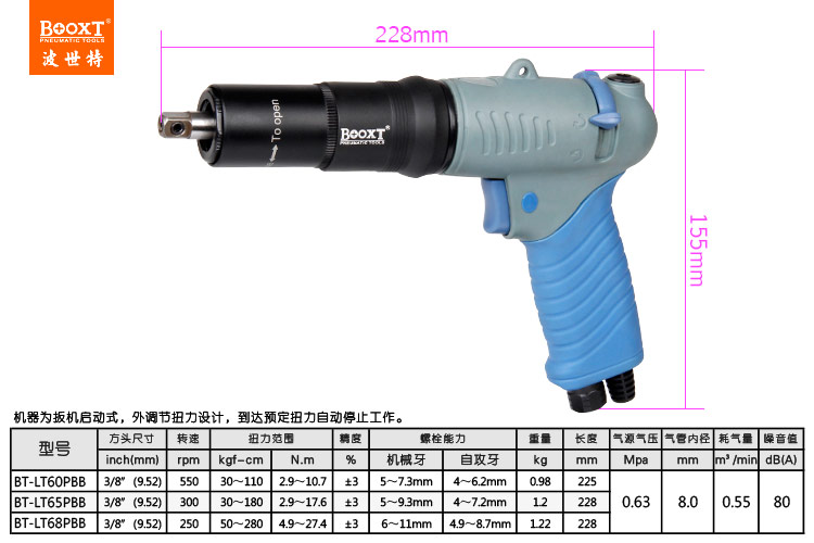 您當前的位置: 首頁 > BOOXT產品中心 > 氣動螺絲刀 > 可調定扭力風批 > 風動扳手BT-LT65PBB