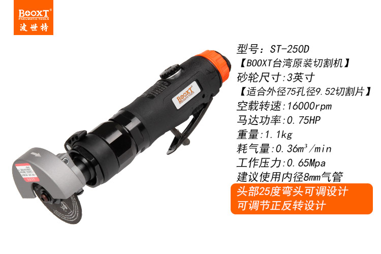 東莞市強勁五金工具有限公司提供臺灣BOOXT波世特品牌氣動工具,可調(diào)角度氣動切割機ST-250D廠家直銷,首件享特價。咨詢熱線:4008301980