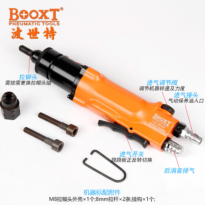 東莞市強(qiáng)勁五金工具有限公司提供臺(tái)灣BOOXT波世特品牌氣動(dòng)工具,氣動(dòng)拉螺帽槍LG-904A廠家直銷(xiāo),首件享特價(jià)。咨詢(xún)熱線:4008301980