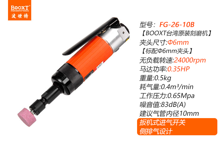 東莞市強勁五金工具有限公司提供臺灣BOOXT波世特品牌氣動工具,高精度氣動刻磨機FG-26-10B廠家直銷,首件享特價。咨詢熱線:4008301980