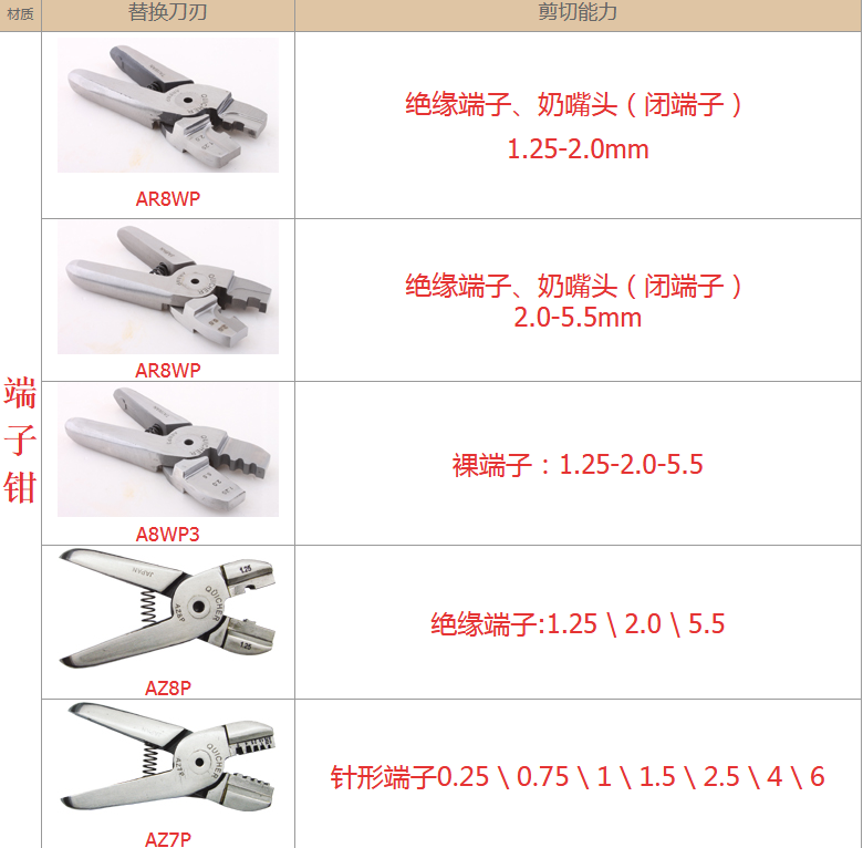更多型號選型資料如下: