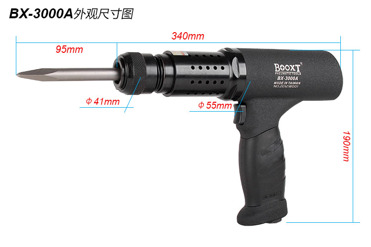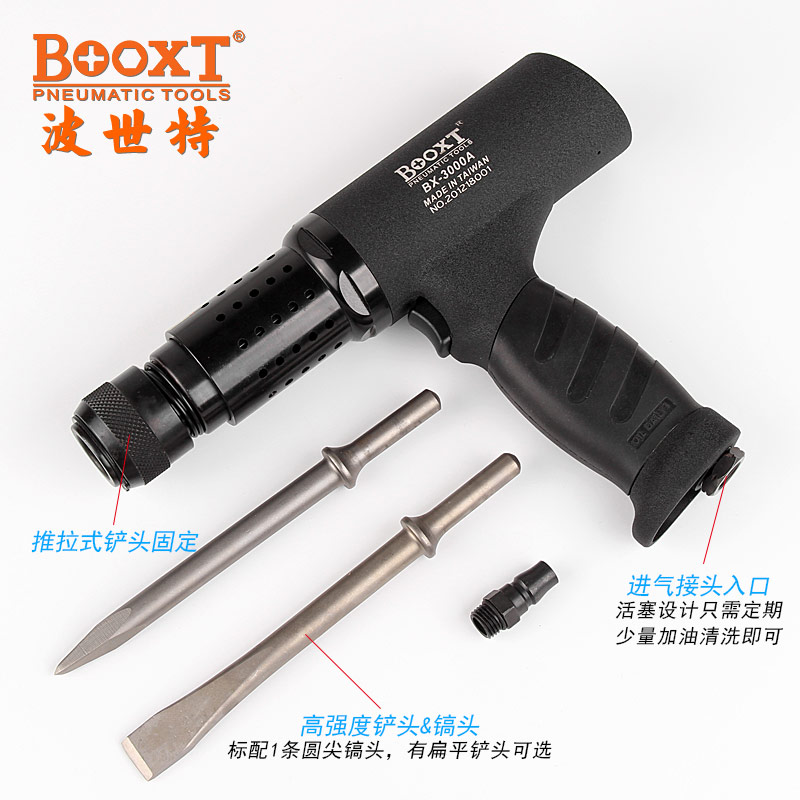 東莞市強勁五金工具提供臺灣BOOXT波世特品牌,氣動型沖擊鏟BX-3000A廠家直銷,首件享特價。咨詢熱線:4008301980