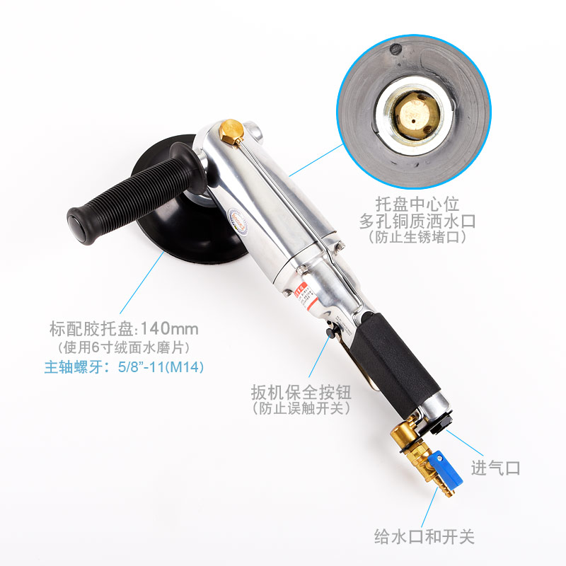注意:以壓縮空氣為動力,沒有觸電的危險(xiǎn)(傳統(tǒng)用電,石材打磨都需要注水,用電非常不安全)。