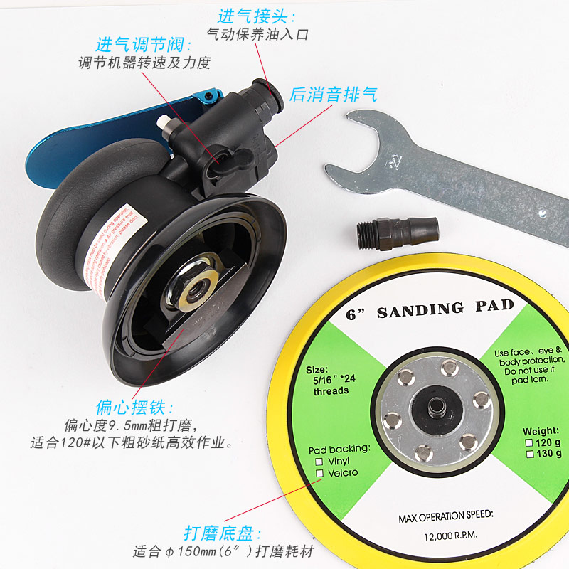 --粗磨偏心度幅度為9.5mm,扭力大,切削能力更大,適合重力打磨。工件一般幅面較大,要求打磨速度快,粗糙的打磨表面,如:玻璃鋼,UV,原子灰等材質(zhì)比較硬的工件,所用砂紙規(guī)格120#以下;